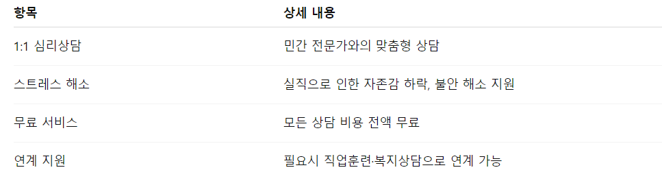 - 대상: 실직, 생활 충격, 심리적 불안을 겪는 구직자