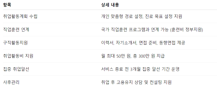 - 맞춤형 서비스 연계: 훈련, 심리상담, 복지서비스 등 필요시 연계