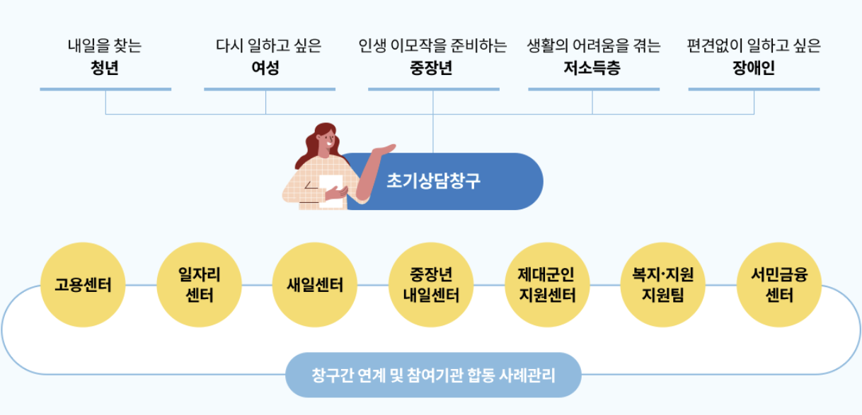 구직을 준비할 때, 고용센터 따로, 복지서비스 따로, 금융 상담은 또 따로 받아야 하는 불편함을 겪어보신 적 있으신가요?