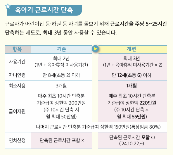 - 기존: 자녀 만 8세 이하 또는 초등 2학년 이하