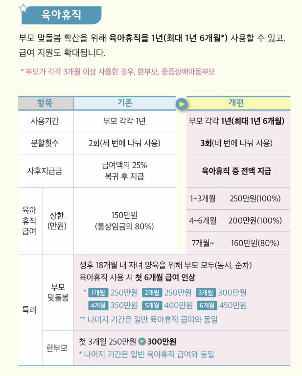 1. 부모 각각 육아휴직 1년 → 1년 6개월 연장
