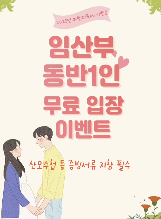 - 산모수첩 등 증빙 시, 본인 및 동반 1인 무료 입장