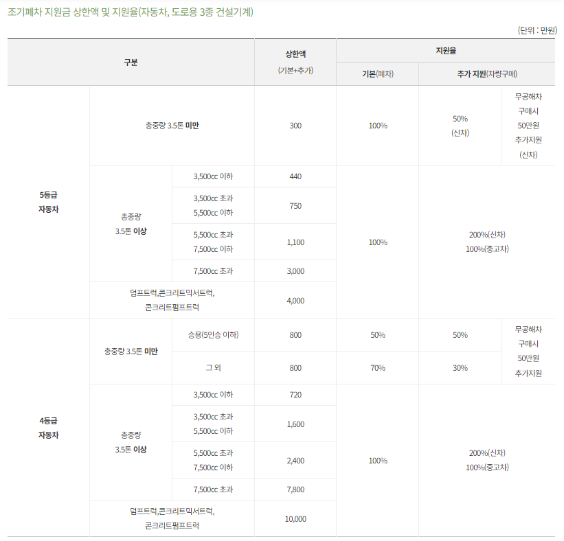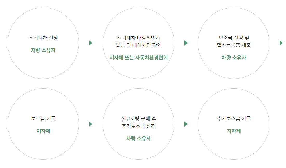 반드시 지자체와 협의한 지정 폐차장을 이용해야 합니다. - 중고차 판매는 지원 대상이 아닙니다.