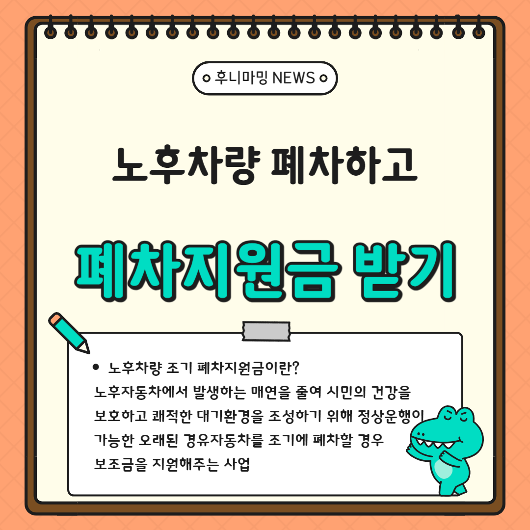 이번 포스팅은 “2025년 노후차량 폐차지원금”의 지원요건, 신청방법, 지원금액 등을 안내해드리겠습니다.