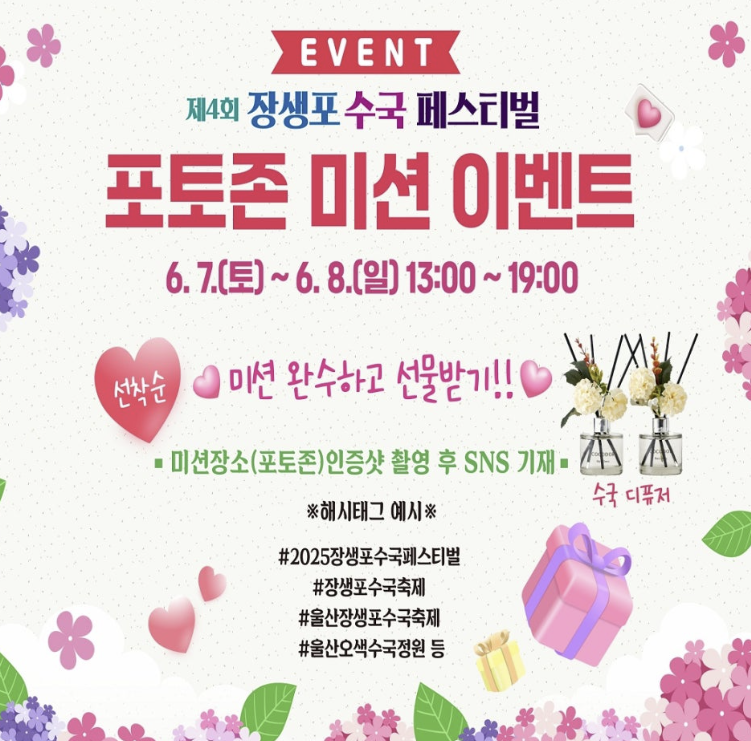 - 필수 해시태그: #2025장생포수국페스티벌 #장생포수국축제 #울산오색수국정원