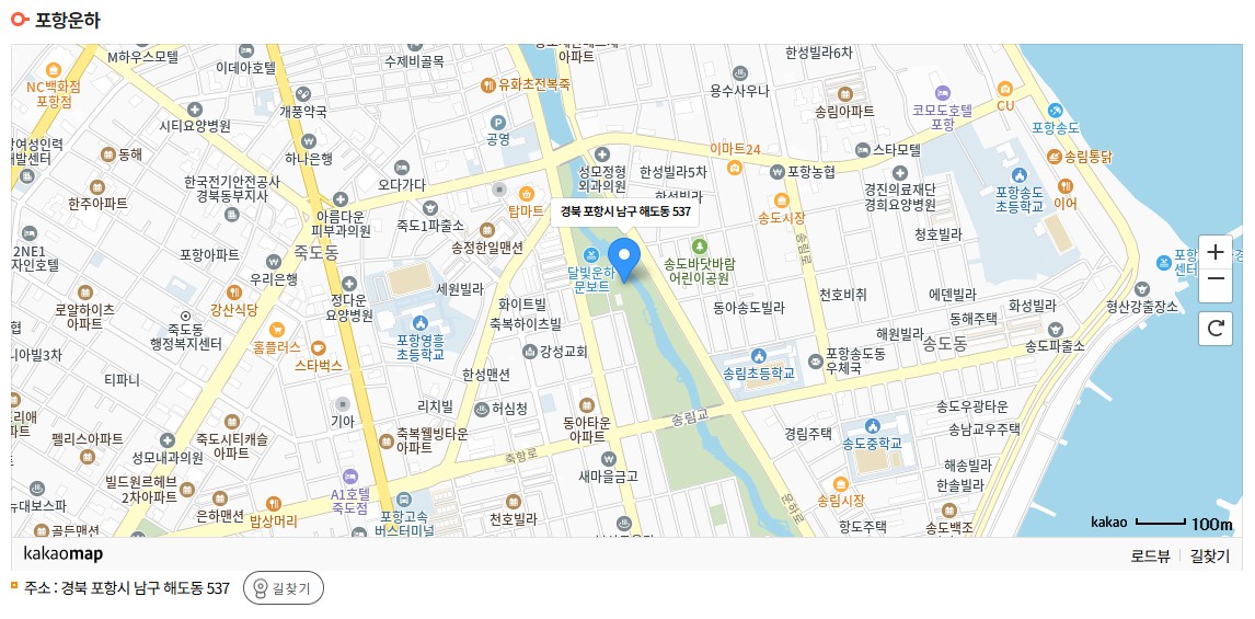 - 주소(주무대 기준): 경상북도 포항시 남구 해도동 115-1