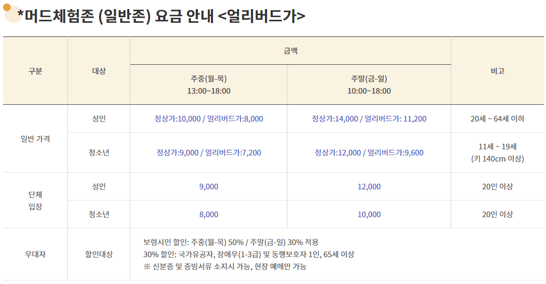▶ 머드체험존 입장료