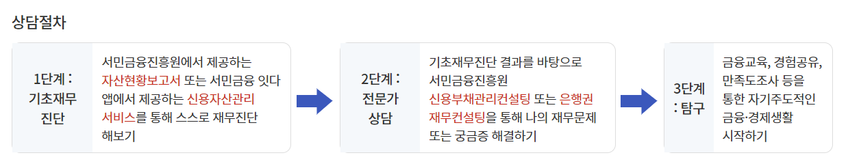신용 상태에 대한 구체적인 상담과 부채가 있을 경우 그 관리 방안을 전문가가 안내합니다.