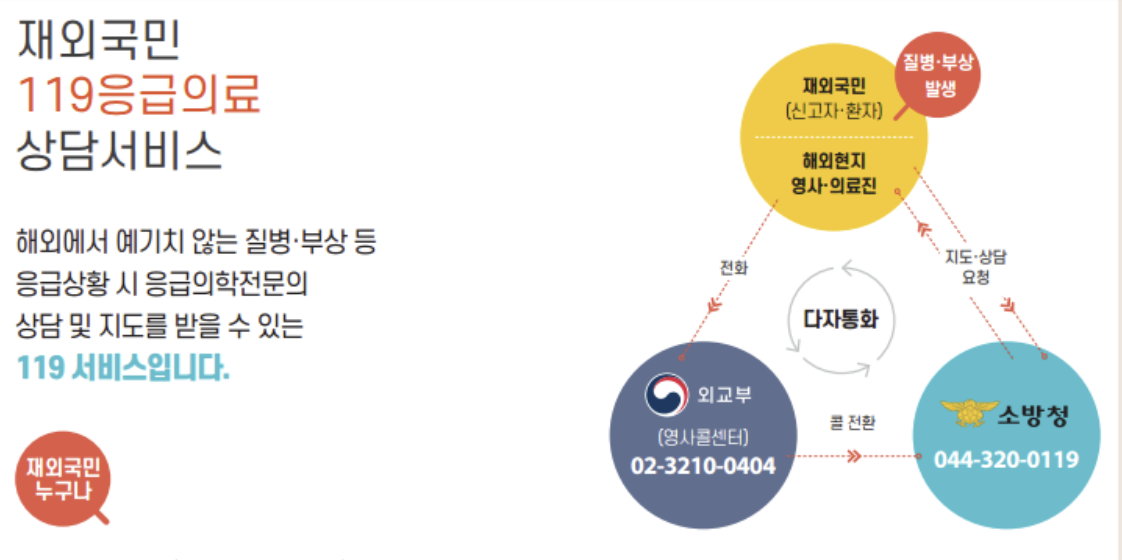 해외여행이나 체류 중이라 하더라도, 언제든 대한민국의 응급의학 전문가들과 연결될 수 있다는 점은 매우 든든한 사실입니다.