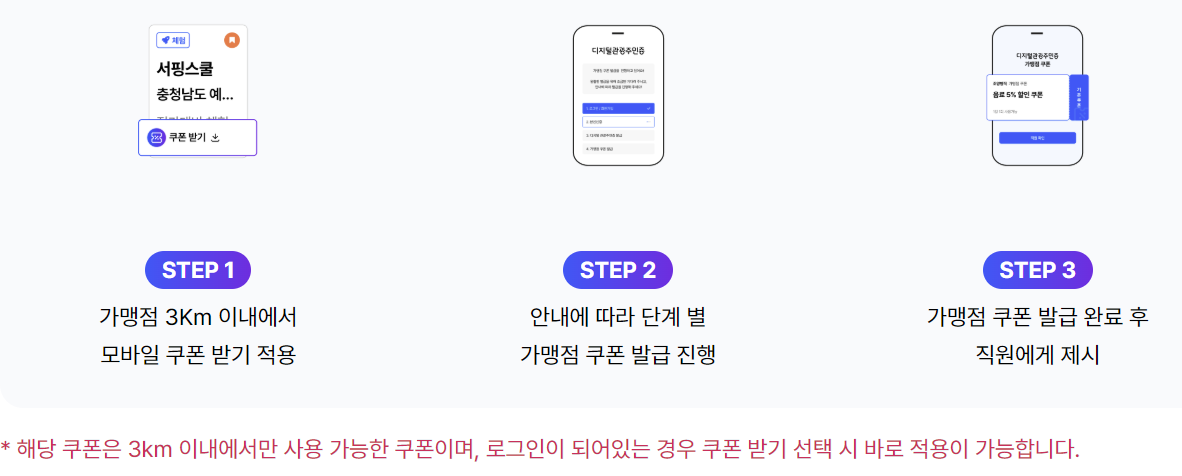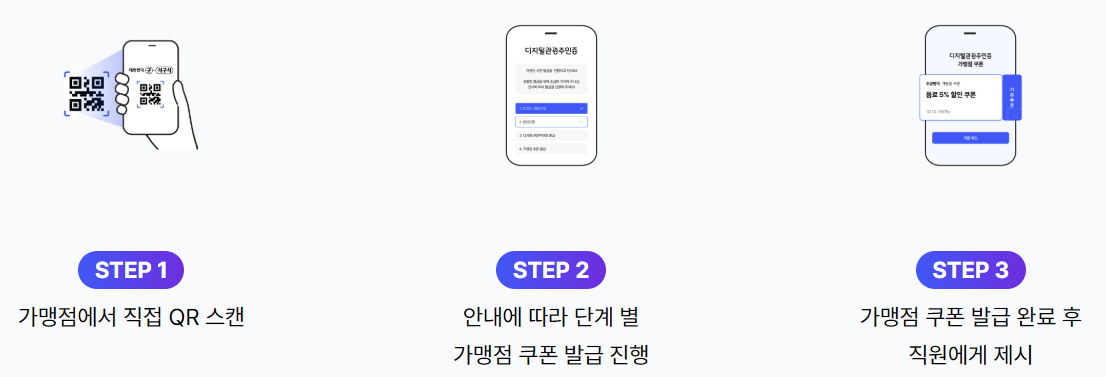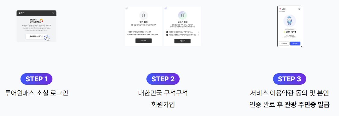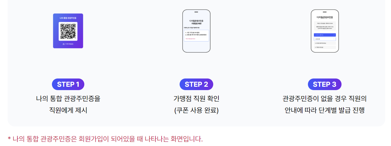 디지털 관광주민증은 아래 3단계만 거치면 누구나 쉽게 발급받을 수 있습니다.