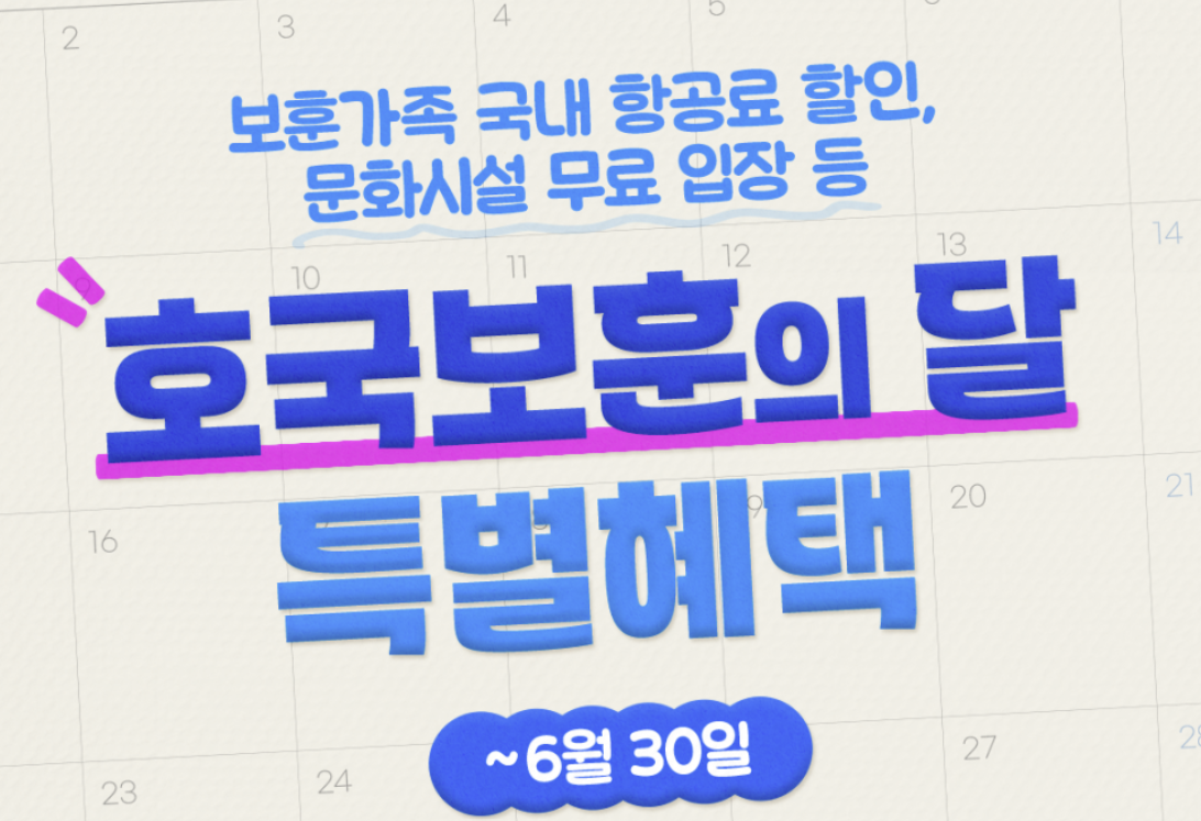이번 포스팅은 호국보훈의 달 특별혜택 내용과 이용 방법을 안내해드리겠습니다.