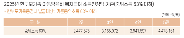2025년부터 적용되는 한부모가족 아동양육비 지원 대상은 다음과 같습니다.