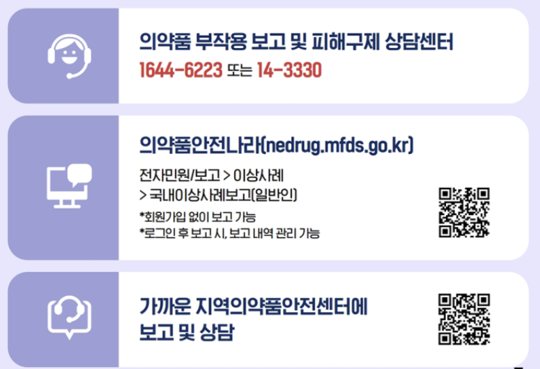 ✔️ 의약품 부작용 신고센터 (1644-6223 / 14-3330)