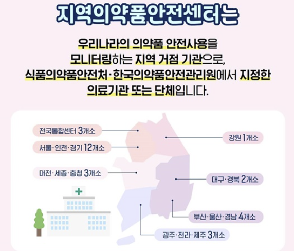 부작용을 빠르고 정확하게 관리하기 위해 전국에는 지역의약품안전센터가 운영되고 있습니다.
