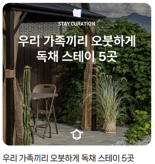 - 주로 시골, 바닷가, 산촌 등 자연 속 숙소에 해당