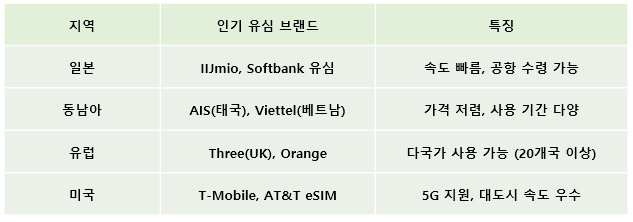 아래는 2025년 현재 가장 많이 판매되는 인기 유심 브랜드와 추천입니다.