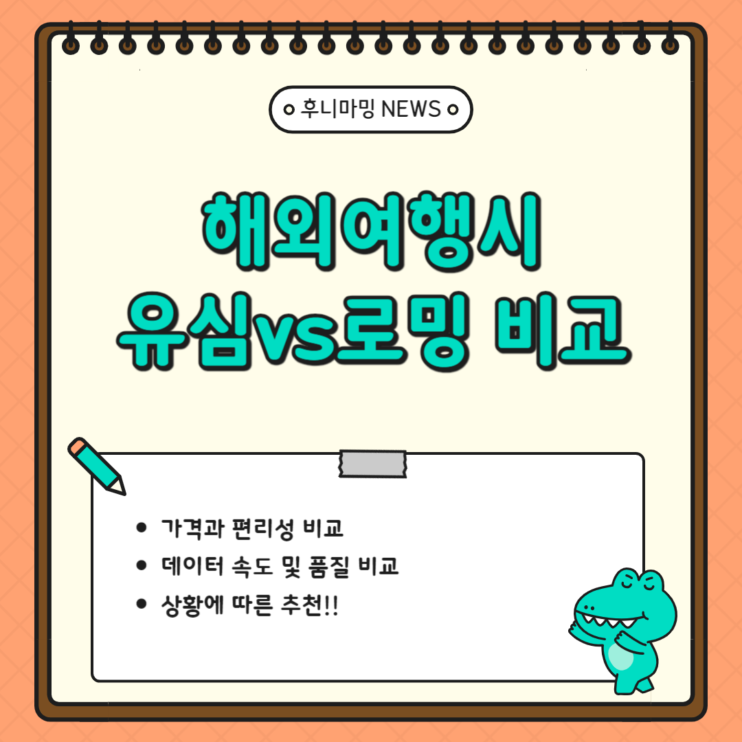 이번 글에서는 비용, 사용 편의성, 데이터 품질, 안전성 등 다양한 관점에서 유심과 로밍을 비교해보고, 실제 상황별 추천까지 함께 안내해 드리겠습니다.