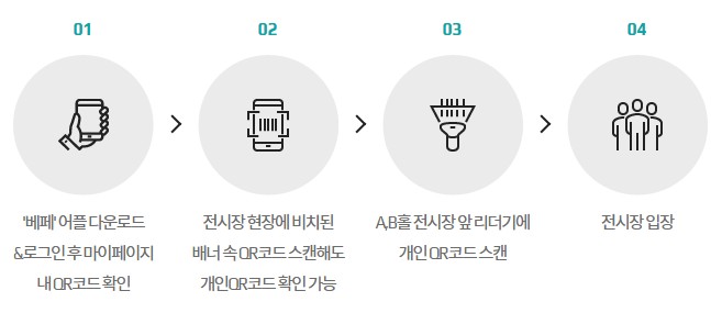 - 코엑스 전시장 입구에서 QR코드 리더기에 스캔 후 입장