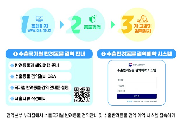 - ‘수출반려동물 검역예약 시스템’에서 온라인 예약을 진행합니다.
