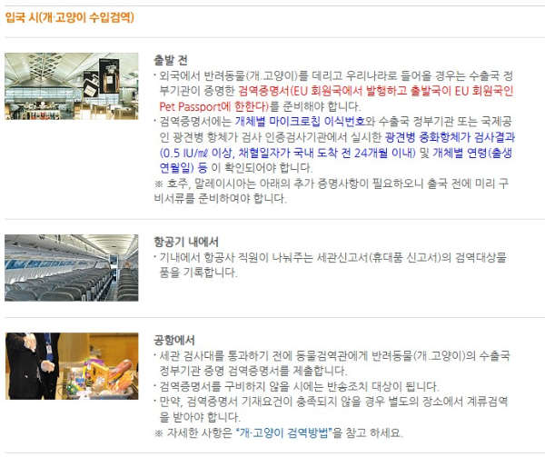 해외에서 한국 입국 시, 반려동물 검역 절차