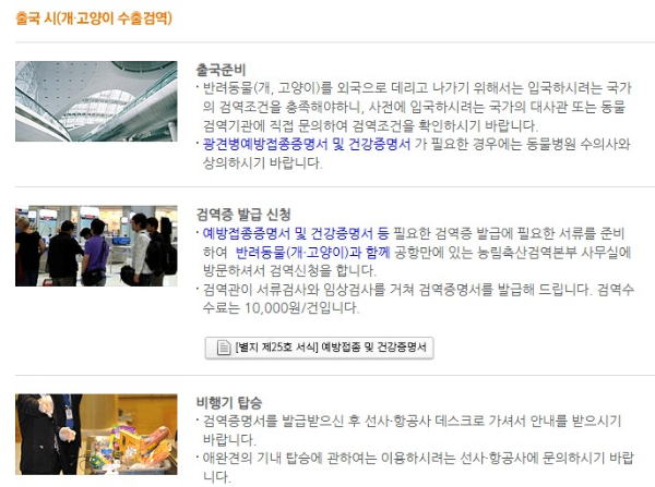 - 방문국의 검역조건을 출발 최소 1~2개월 전 확인