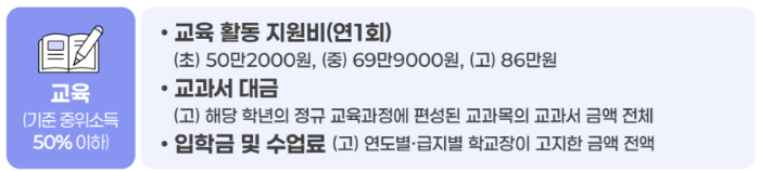 - 교육급여: 교육활동지원비 평균 6% 인상