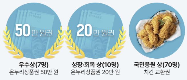 특히 다양한 계층을 고려해 치킨 교환권부터 최대 200만 원 상당 온누리상품권까지 폭넓은 수상 구조가 특징입니다.