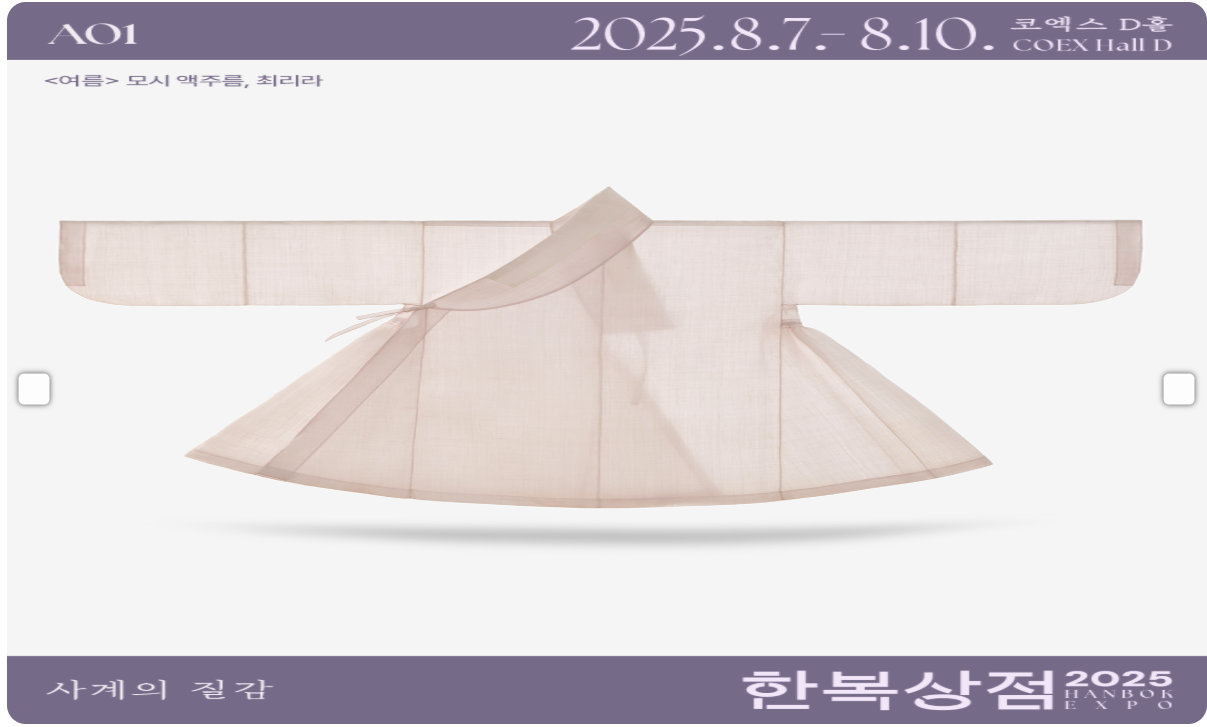 문화체육관광부가 주최하고 한국공예·디자인문화진흥원이 주관하는 ‘2025 한복상점’이 2025년 8월 7일(목)부터 10일(일)까지 총 4일간 서울 강남구 코엑스 D홀에서 개최됩니다.