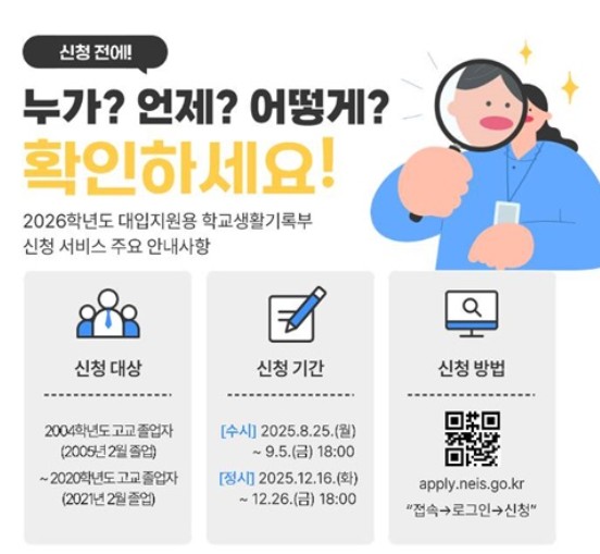 2026학년도 대입지원용 학생생활기록부 신청 대상과 자격 확인하기