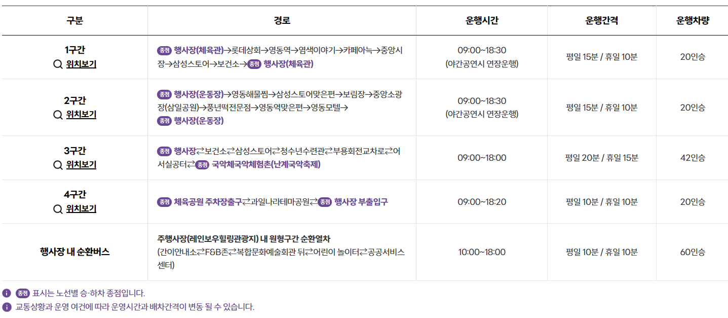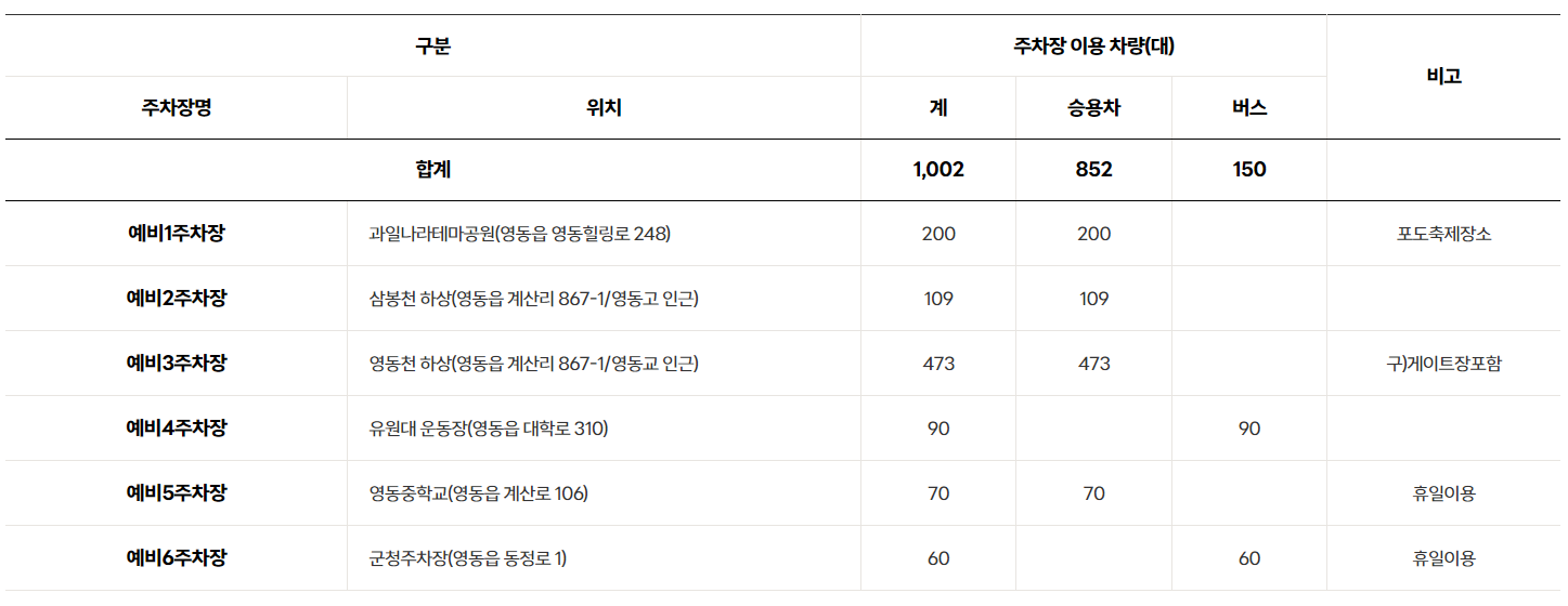 - 개막식, 폐막식 당일은 조기 만차 예상 → 대중교통 권장