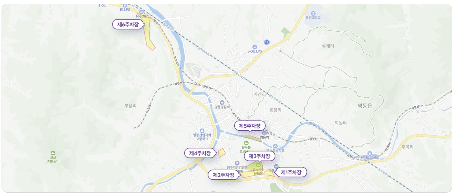 - 버스: 영동시외버스터미널 하차 후 셔틀 연결
