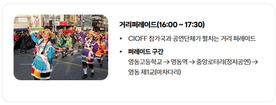 - 거리 퍼레이드 (16:00 ~ 17:30)