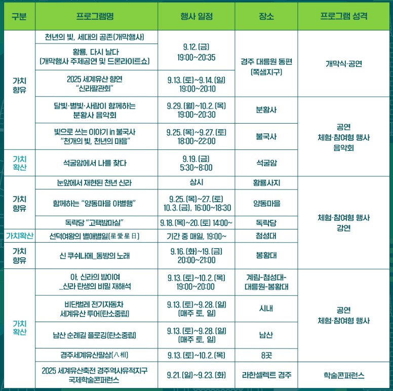 오늘은 2025 세계유산축전 경주의 일정, 주요 프로그램, 그리고 사전예약 방법까지 한눈에 정리해 드리겠습니다.