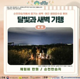 순천만의 새벽 안개와 야간의 고요를 동시에 느낄 수 있는 특별한 투어입니다. 일반 개방 시간에는 접할 수 없는 풍경이 펼쳐져 감동적이라는 후기가 많습니다.