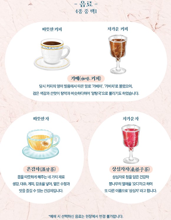 석조전 2층 테라스에는 작은 카페가 열립니다. 이곳에서는 ‘황실 가배(커피)’와 달콤한 디저트를 제공하며, 클래식 연주까지 어우러져 특별한 분위기를 연출합니다.