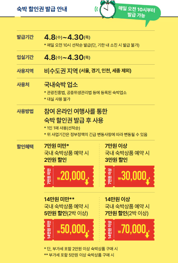 숙박세일페스타는 선착순 방식이기 때문에 발급 일정과 방법을 정확히 알고 계셔야 합니다.