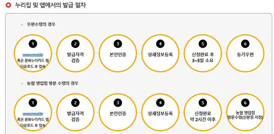 - 문화누리카드 공식 누리집 또는 모바일 앱을 통해 신청할 수 있습니다.