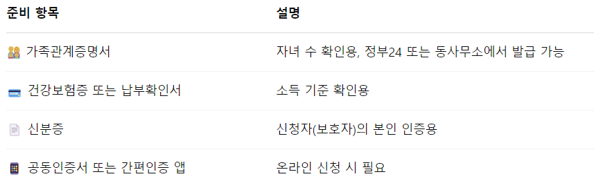 가구원 수와 소득 기준에 따라 정부 지원금 비율이 달라지기 때문에, 관련 서류는 꼭 준비해 주세요!
