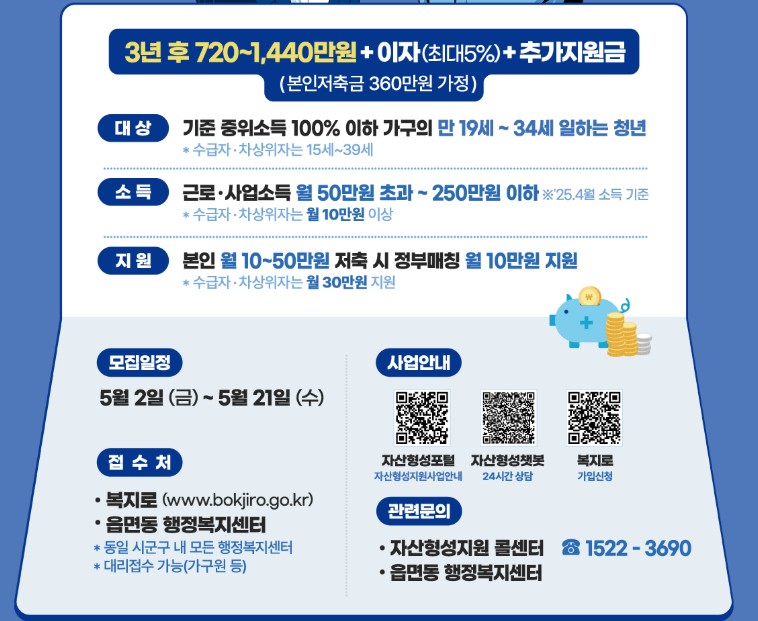 3년간 근로·교육·자립 활동을 성실히 이행하고 조건을 충족하면, 최대 1,440만 원의 자산 형성 가능