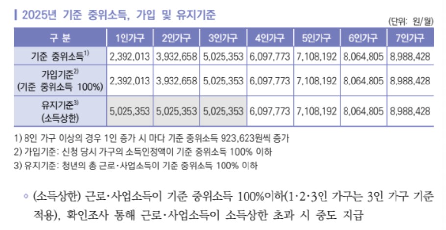 (2025년 기준, 1인 가구 약 224만 원 이하)