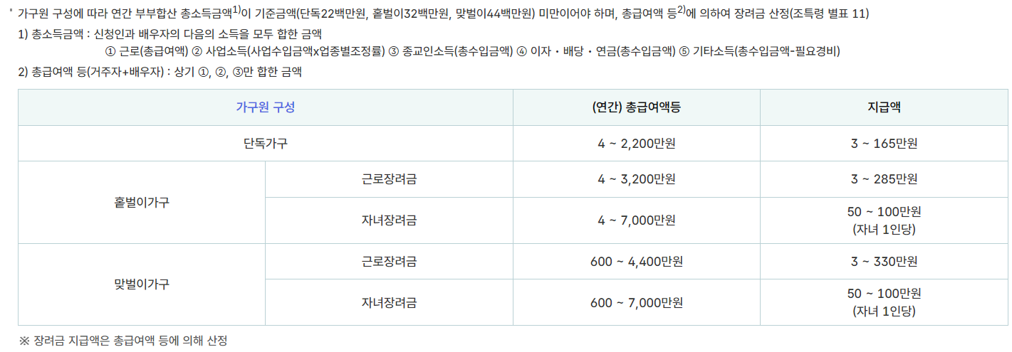 - 가구원 재산 기준은 2억4천만원 미만 유지