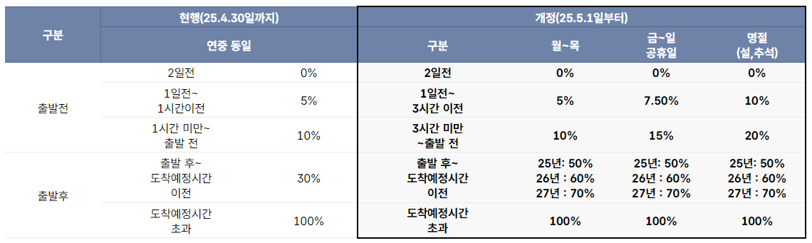 ✅ 2025년 5월 1일부터 적용되는 취소수수료 기준