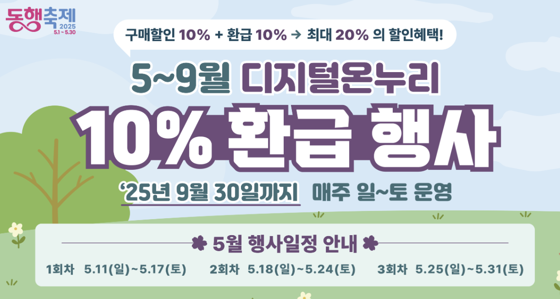 중소벤처기업부는 2025년 5월 11일부터 9월 30일까지 약 5개월간 ‘디지털 온누리상품권 환급 행사’를 진행한다고 밝혔습니다.