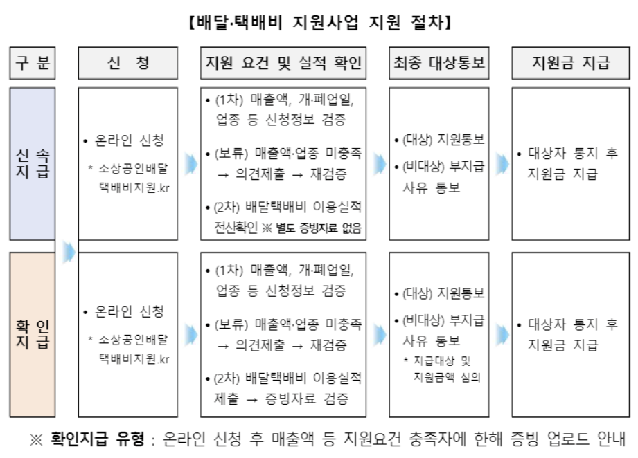 일반 확인 대상자: 소상공인이 매출내역, 배달비 사용 증빙 등을 제출하고 심사 후 지급
