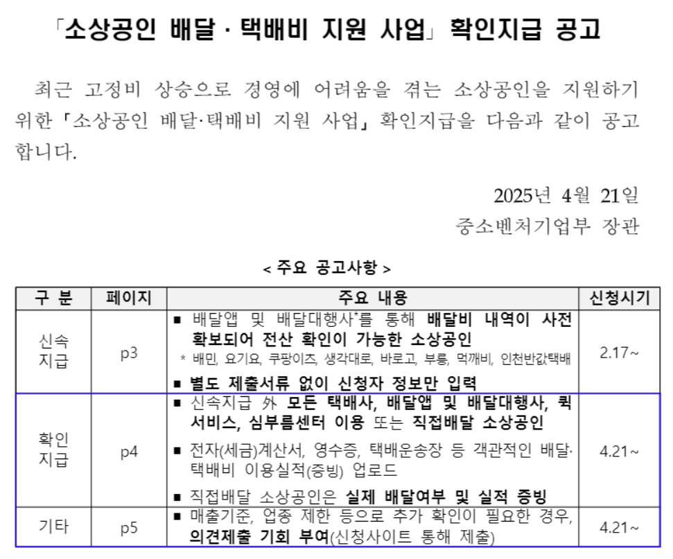 아래에서는 2025년 기준, 가장 최신 정보를 토대로 소상공인 배달·택배비 지원사업의 조건과 신청 방법, 유의사항을 상세하게 안내해드리겠습니다.