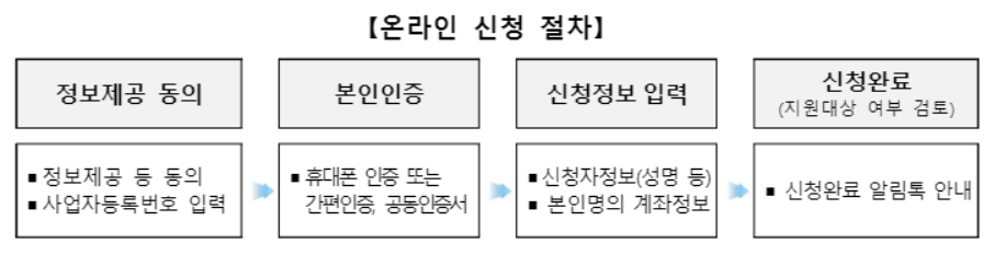 방문 접수: 온라인 신청이 어려운 소상공인을 위해 소상공인시장진흥공단 지역센터에서 신청도우미를 통해 접수 가능