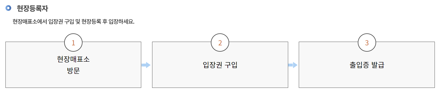 - 현장등록자 : 현장매표소에서 입장권 구입 및 현장등록 후 입장