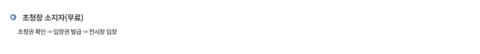 - 초청장 소지자 : 초청장 확인 후 입장권 발급하여 입장