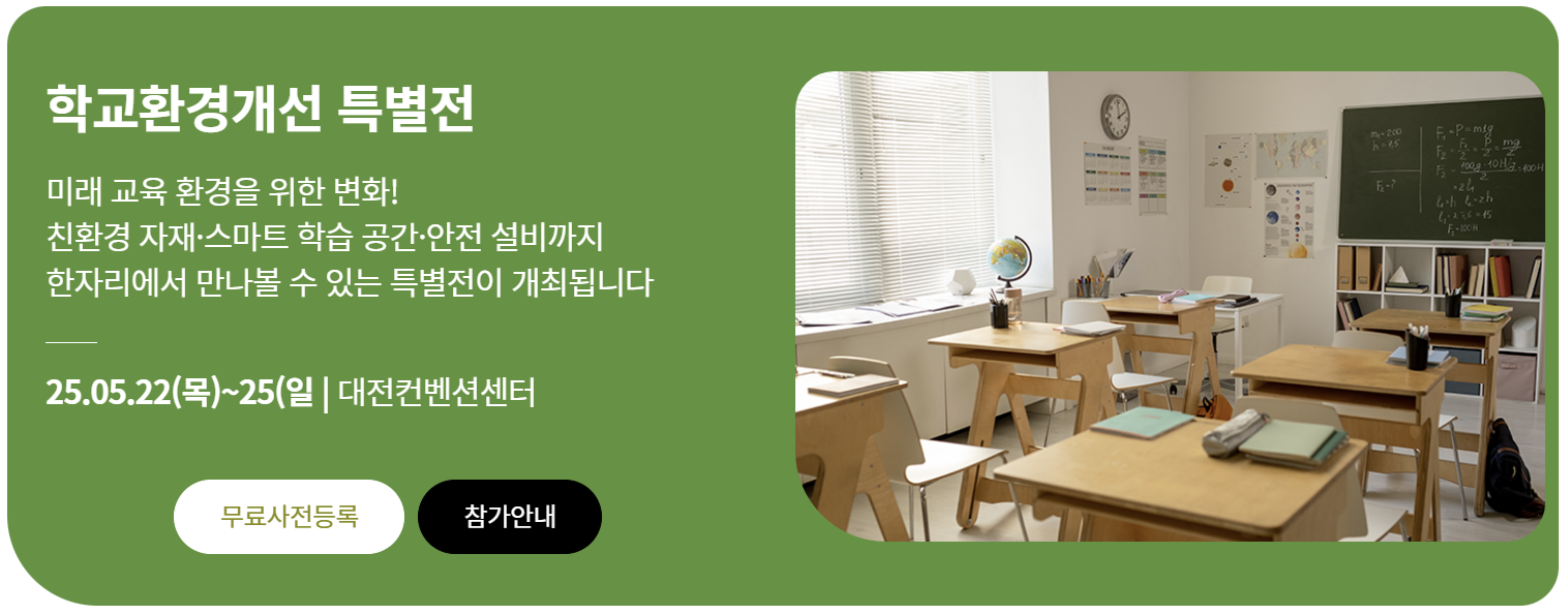 - 학교환경개선 특별전 : 책상, 의자, 스마트 보드, 친환경 및 에너지 절감 시설 등