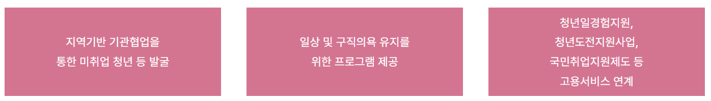 청년카페에서 프로그램을 이수하면 아래와 같은 청년고용정책과도 연계가 가능합니다.